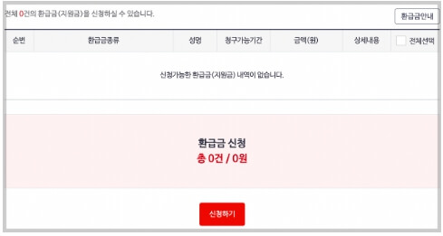3. 인증이 끝나면 환급금이 조회됩니다. 조회된 환급금이 있으시다면 신청하기를 누릅니다.